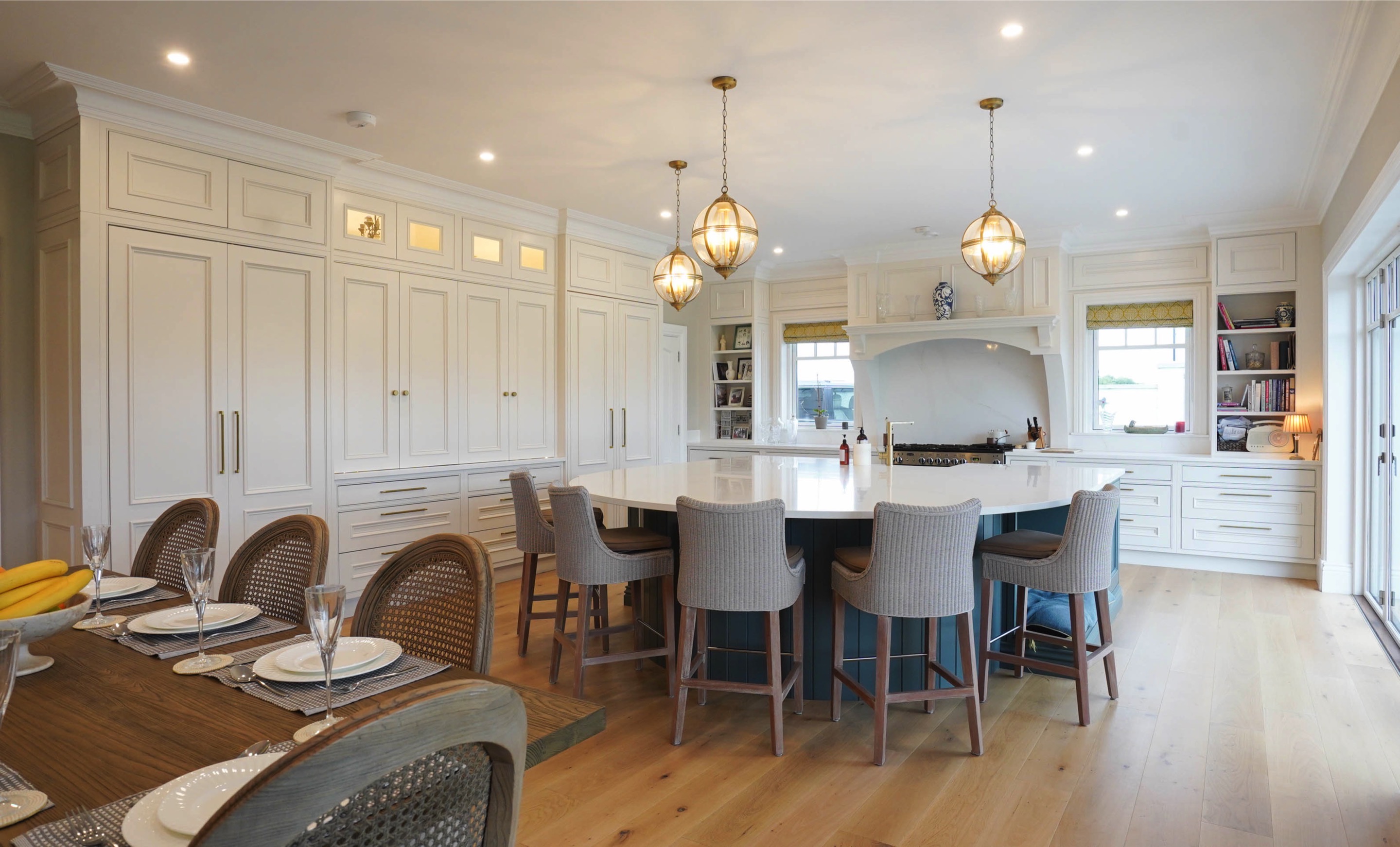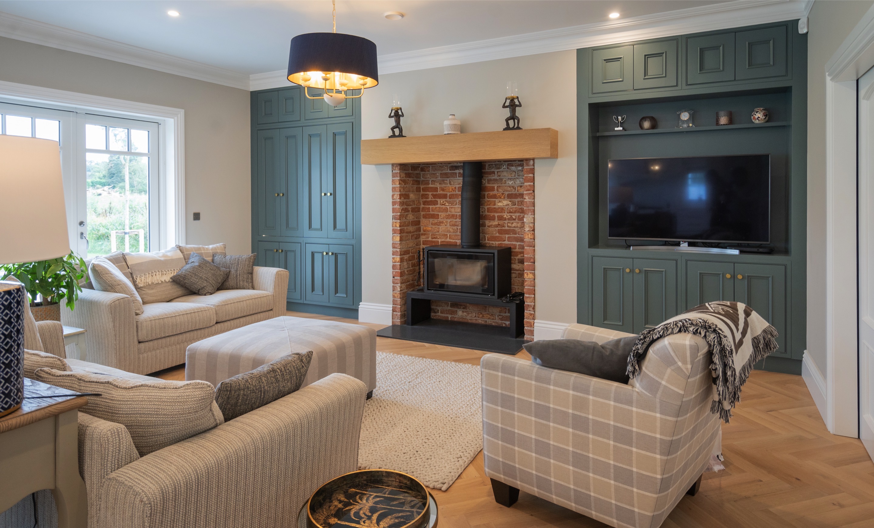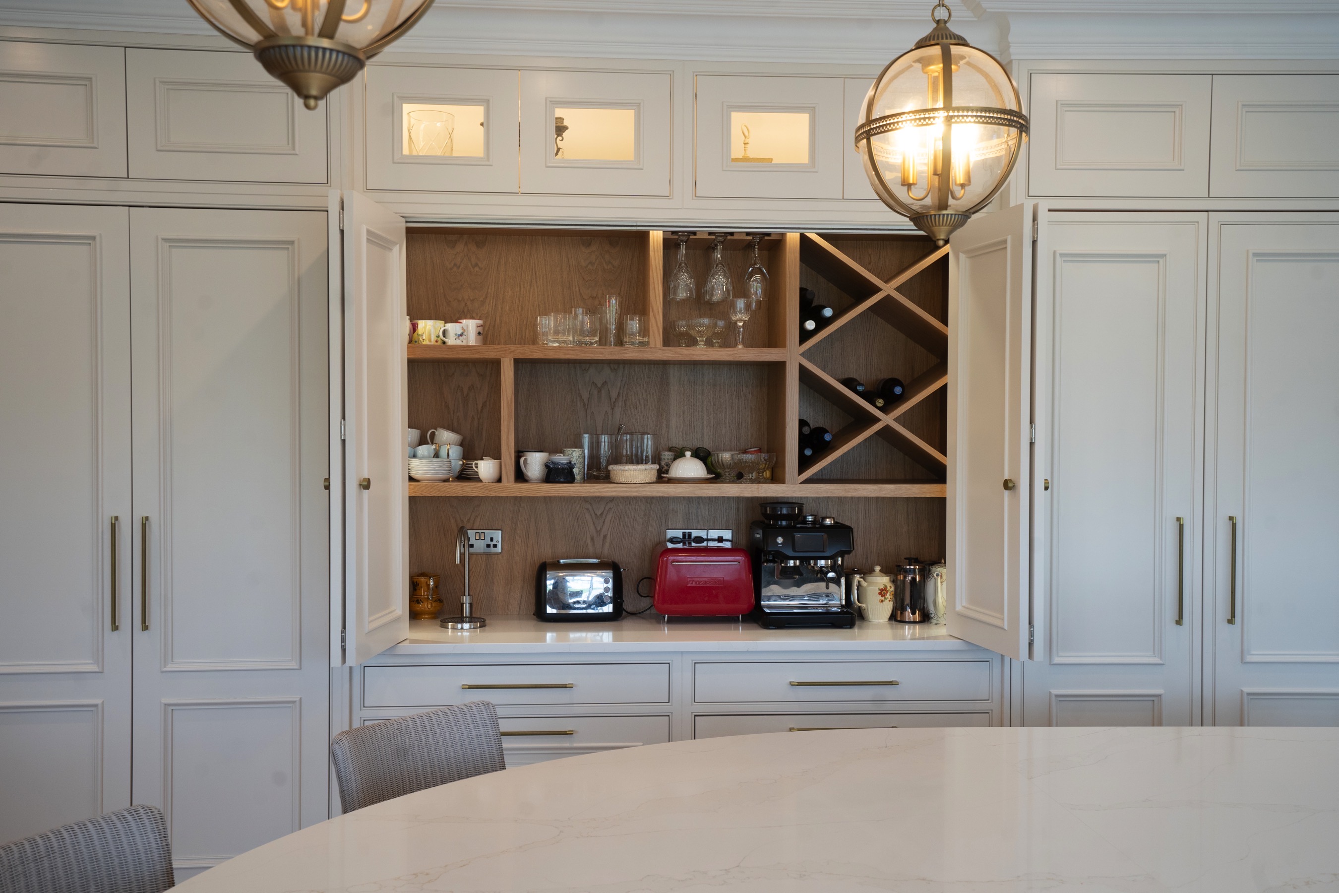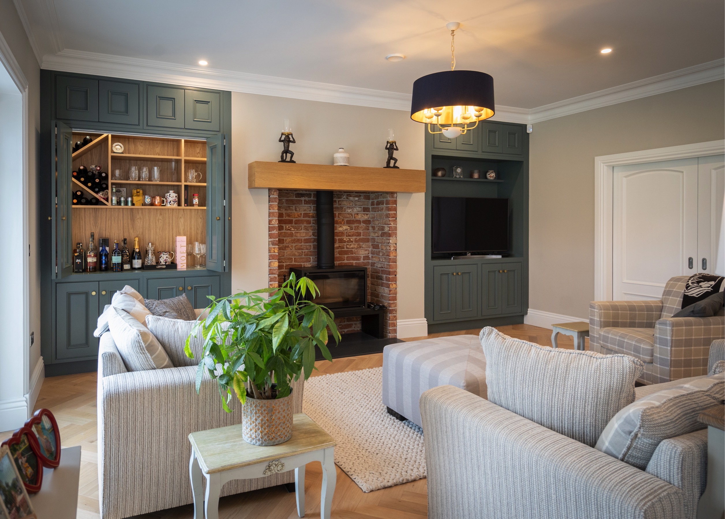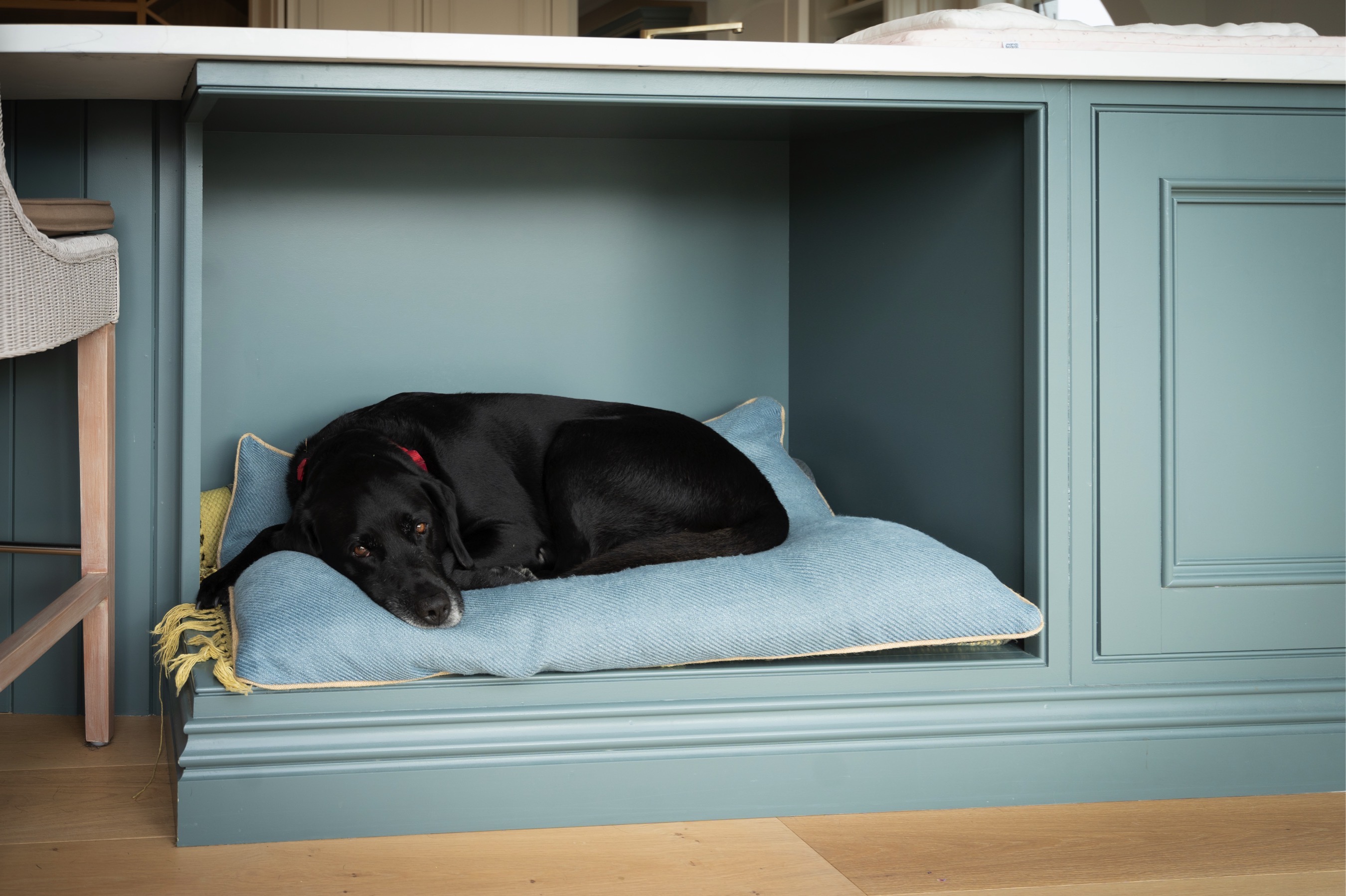 This stunning, bespoke kitchen from our Nicholas Lee Collection, gives that great family and cosy feeling from the moment you step into the open-planned kitchen and living area, with its large quartz island and fold back cabinetry. The room is flooded with light, which compliments the colour scheme to give that lovely, spacious and warm feeling. Even sleepy Stanley approves of his new space! 🐶